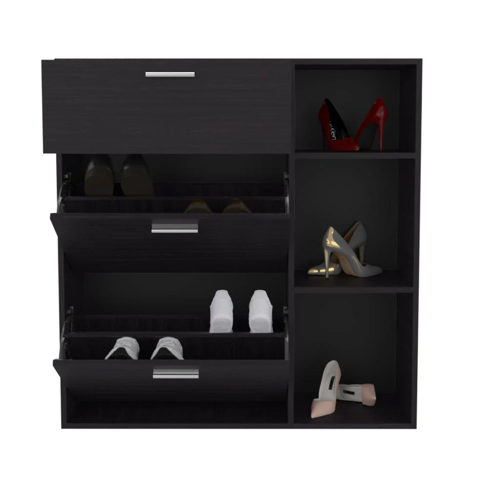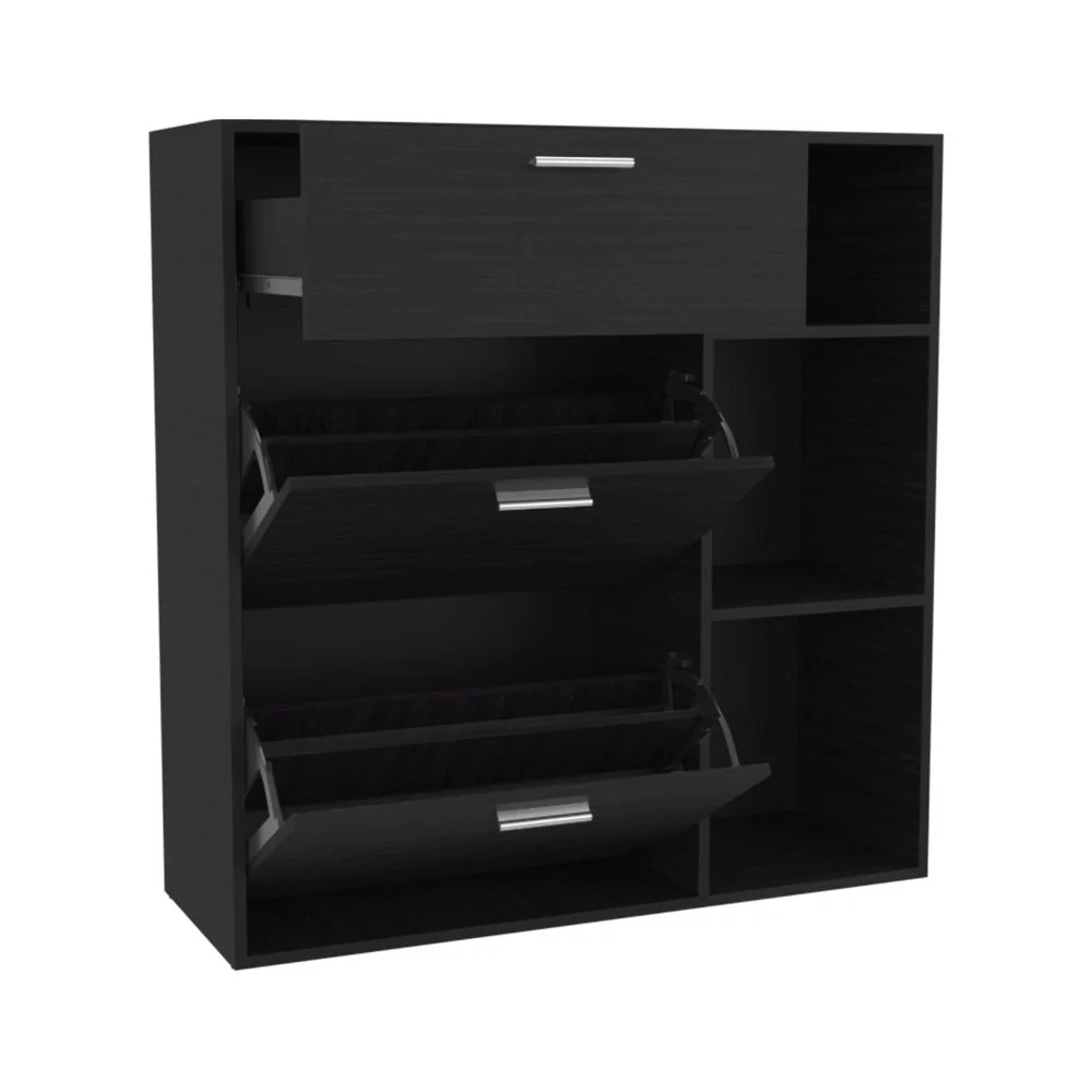 Mueble Zapatero, con 2 puertas, 1 cajón, 2 entrepaños, con espacio para ubicar y organizar zapatos y objetos decorativos, es de facil instalación.