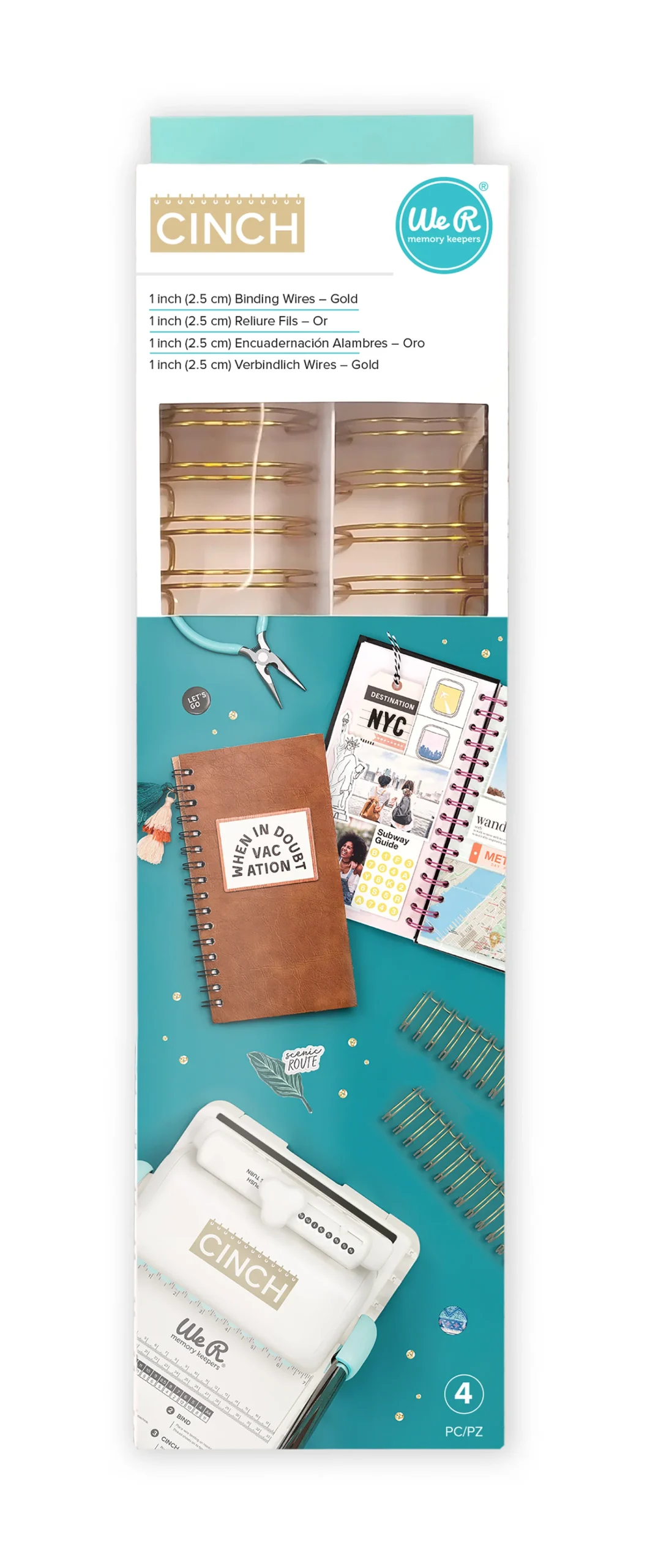 Estos arillos están diseñados para que puedas egargolar tus trabajos utilizando la Cinch de We R Memory Keepers, u otra máquina para engargolar, de una forma fácil y cómoda. Podrás hacer todo tipo de proyectos, como álbumes, libretas, agendas, calendarios, recetarios… Son arillos de alambre con un diámetro de 1″ o 2,54 cm, con una longitud de 12″ o 30.5 cm, por lo que son lo suficientemente largos para que puedas encuadernar proyectos del tamaño de los papeles típicos de scrapbooking, y puedes cortarlos fácilmente empleando unas pinzas para hacer proyectos más pequeños.