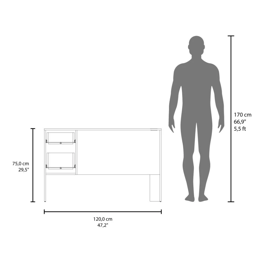 Escritorio, con amplia superficie de trabajo, 2 cajones para almacenar objetos y es de facil instalación.