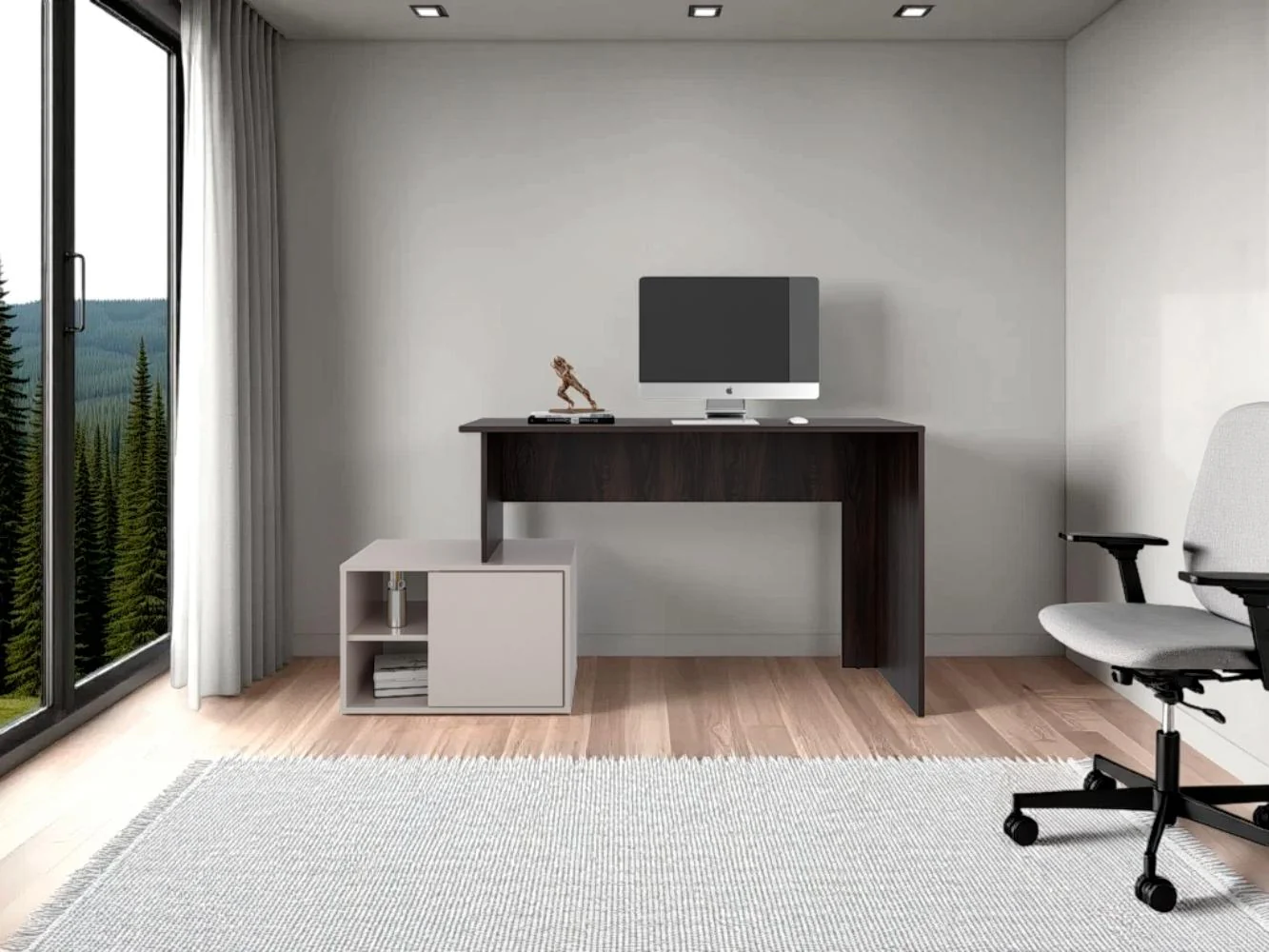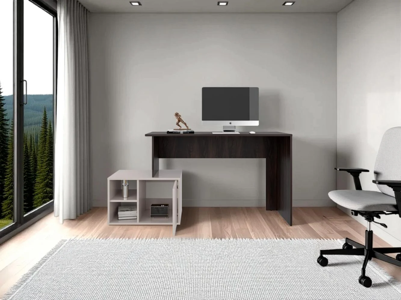 Escritorio con espacio con puerta batiente para almacenar libros u otros, compartimientos para objetos de estudio o decorativos, y de facil armado.