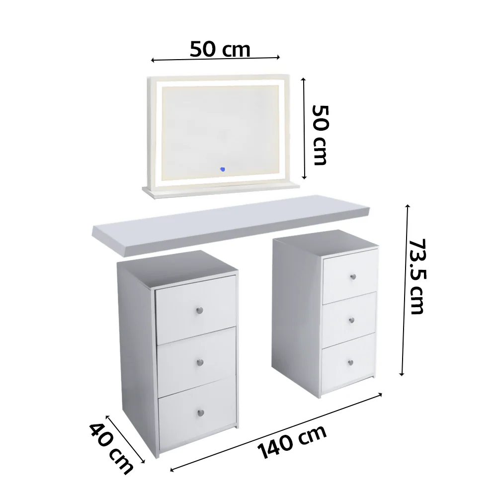 2 organizadores taly 3 cajones + cubierta superior + espejo con base 60cm x 50cm
